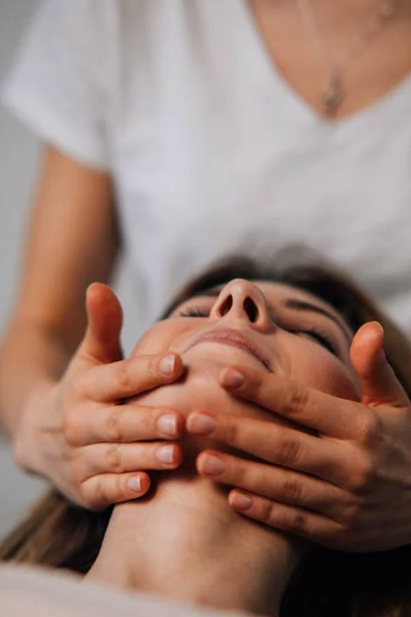 Gentle massage of face, neck, shoulders and head