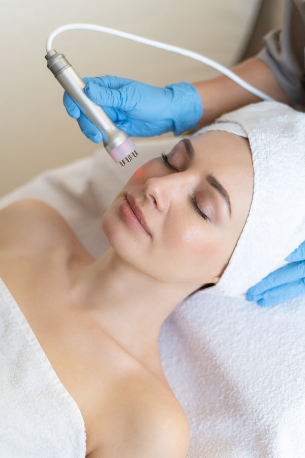 Application of oxygenating cream and treatment with high frequency machine.